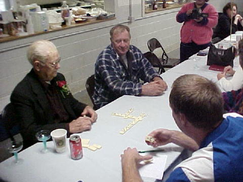 Roud Lane plays a game of dominoes, his son Roud Jr. (right)