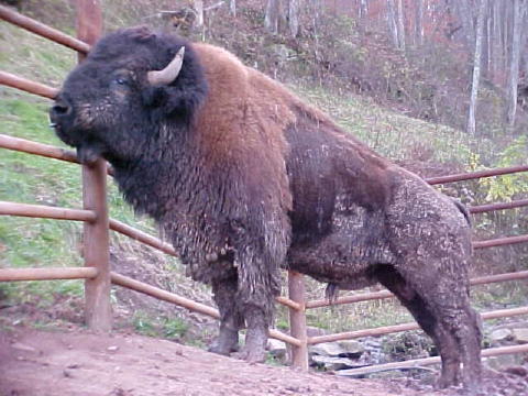 Jack Marks of Millstone said he always wanted to have buffalo on his farm, so folks driving up and down the road would slow down and exclaim "Is that buffalo?" Marks has seven of the large animals on his hillside farm. The big boy bull (top picture) is "Buffy," who wasn't exactly happy we were taking his picture. Marks and his buffalo escapades is the subject of a story in last week's Times-Record/Roane County Reporter. Marks' other hobby is having a Halloween party for his neighbors every year, visible in the Hur Herald a few days ago.