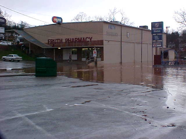 Water approaches Fruth Pharmacy