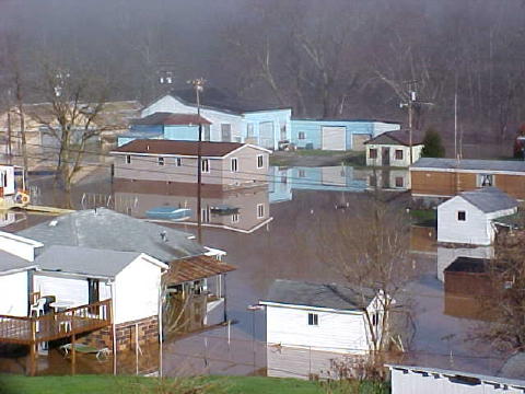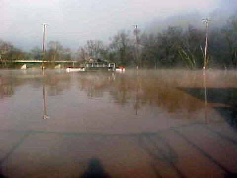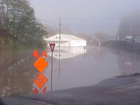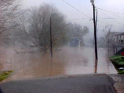 Grantsville VFD member Judy Brannon With dawn's early light and lingering fog, the town of Grantsville had a little more wear from flooding, but nothing exceptional. It will be a Little Kanawha flood to record in Calhoun, but will likely be best remembered by Glenville, which took a major hit. The water at Grantsville crested at 39.5 feet about 6 a.m. Wednesday, with the usual and customary locations taking the brunt of the flood. OES Director Bill Stemple said county residents who received flood damage should make an initial call to Calhoun Control, leaving their name, phone number and description of damage. The number is 354-9271. Grantsville's record floods were recorded in 1967 at at 43.9 feet and in 1985 at 42.8 feet.<> Glenville water crested seven feet above flood stage at 30 feet, causing major damage to areas near the river. Glenville's record flood is 36.5 feet in 1985. Elizabeth was cresting about one foot under flood stage today. The water has been going down very slowly along the LK in Calhoun. At 10 p.m. Thursday night it was at 35.8 feet, still above flood stage. Route 5 and sections of Rt. 7 were still closed, among other access roads close to the river. The water was three and one-half feet above flood stage, not enough to stir the town's residents last night. Most everyone went to bed, with virtually no requests for evacuation. The only creatures stirring during the early morning hours, members of the Grantsville Volunteer Fire Department, Mayor Neil Blankenship and Police Chief Ron Gordon. Vier Brannon and his wife of Grantsville, passengers on the VA van to Clarksburg, traveled lots of extra miles trying to return to Grantsville last night. They finally arrived in Grantsville to discover Route 5 water was blocking their way home. They spent the night at the Grantsville VFD, where daughter-in-law Judy Brannon was on duty. Water caused problems up and down the Little Kanawha Valley, from the Rush Run Baptist Church having over three feet of water to a fire that destroyed a house surrounded by flood water at Annamoriah.
