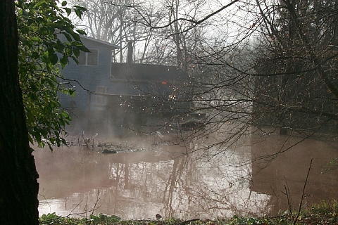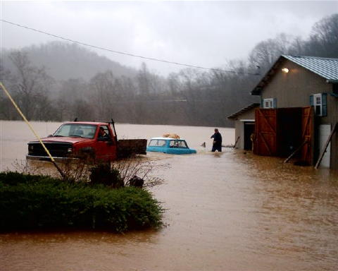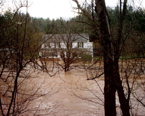 Water surrounds Berdine-Brannon House along State Rt. 16 south of Arnoldsburg (Photo by Melissa McKown Bower) |