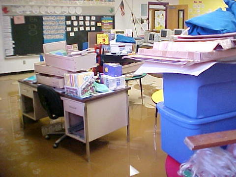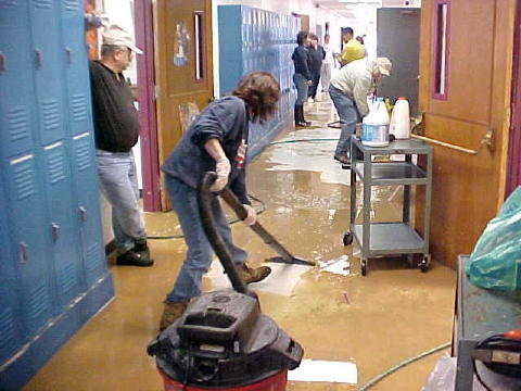 FLOOD WATER DAMAGES ARNOLDSBURG SCHOOL - Clean-Up Effort In Full Force |