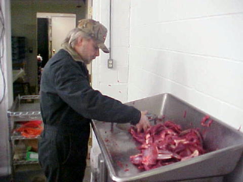 Meat being turned into deer-chuck