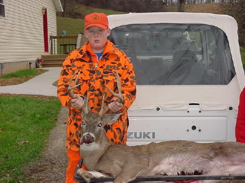 ![]() Brandon McCune, age 6, killed his first buck on Oka Road at Chloe, WV