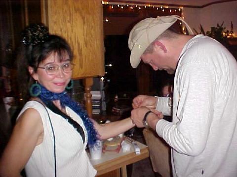 Gold-digging murderer clings to her millionaire boyfriend, Scott It was murder mystery night for members of the Calhoun-Gilmer Writer's Guild, a who-done-it, who-deserved-it and how-was-it-done production, using the acting skills of guild members who arrived at the meeting in character. The murder drama was conducted at the home of Kitty and Jeanne Wilson of Grantsville Friday evening, where a party was held for a fictional character who had just became a millionaire. During the evening, one of the guests, "reporter" Mary Wildfire fell prey to foul play, her body discovered in the bedroom of the Wilson home, strangled. The Sheriff, after a tedious investigation, charged Scott's gold digging girlfriend with the murder. THE CAST Scott Sheldon: Has just sold his invention - the "Wunder-Whisk" - and is now a millionaire, and has invited his relatives and friends to a party on his departure to Australia. Donna Morningstar: Scott's new gold-digging girlfriend. Auntie Jeanne (Jeanne Wilson): Scott's dear old aunt and host for the party. She is sweet but she has some interesting habits, sipping from her hidden flask. Lisa Minney: Scott's financial adviser. She is big city all the way and the money is what matters. Jim Mullooly: A local painter who thinks he is the reincarnation of Van Gogh. Marge (Lisa Sheldon): Scott's unpleasant and un-kept neighbor. Harriet Whipkey: A retired first-grade teacher turned bodyguard. Casey Metz/Harriet's nephew: He is the local high school football star and is pleased that he has a chance to be seen by all his adoring fans. Bill Reichenbach: Scott's best bud. He takes life even less seriously than Scott. Bob Weaver: Local politician making the rounds in a campaign year. Mary Wildfire: A reporter for the small local paper looking to make it big by uncovering some dirt on the local boy who made a quick fortune (Scott). Ben Baker: The local but slightly off-kilter sheriff.