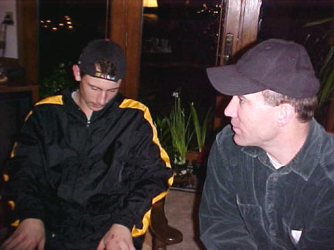 Sheriff Baker (right) interviews football star Casey Metz after murder