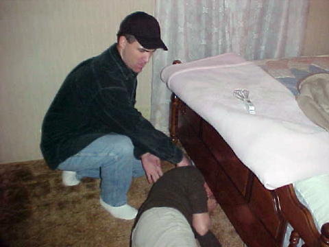 ![]() Sheriff discovers body of reporter in Wilson bedroom, the famous "Wonder Whisk" is on the bed
