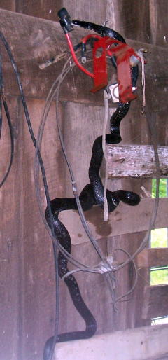 "Two black snakes photographed climbing our barn wall on Walker Road," said photographer Cassie Mullins