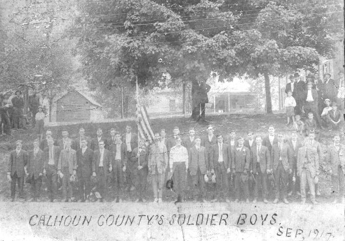 WW I soldiers in front of the old courthouse, Grantsville, WV.