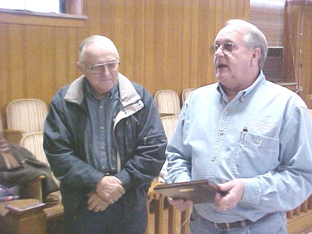 ![]() Offutt (left) receives award from Commission President Larry McCallister 2002 - Deward Offutt is among a few people in Calhoun County that has "stuck to it," involved in numerous farming, community and civic projects for over 45 years. Offutt shows up and does his volunteerism "because it has been important to our people," he said yesterday. The Arnoldsburg area resident was given a special award yesterday by the Calhoun County Commission, recognizing his dedicated service to the community. Calhoun Commission President Larry McCallister said "He has been an example of what a person can do in their lifetime to help the community. We take this day to recognize him." Offutt has been a Little Kanawha Soil Conservation Supervisor for 45 years, and a member of Resource Conservation and Development (RC&D) for about 35 years. He originally help start the West Fork Community Action Association, the first in West Virginia and 13th in the nation. Besides the development of the community park at Arnoldsburg, the organization organized the well-known West Virginia Molasses Festival, an on-going event for nearly 35 years. "I was on the Calhoun Commission when we got the first ambulance, before any other area county," he said. "At that time I helped get a $3 million grant to expand Calhoun General Hospital." Offutt said "My life has been filled with work, and I'm grateful some of it was to help Calhoun County." |
