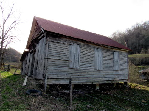 Mill Run, still standing one room school on Milo Road that closed in the 1950s near the Deweese Homestead, among over 100 one room schools once in county. While many early schools were well constructed, this school was built of rough cut boards