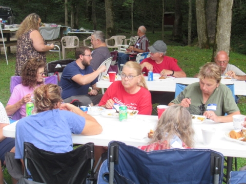 ![]() (Left) Charlie McKown sings "My West Fork Valley Home" acapella, written by Randall Whytsell in the 1940s, saying "I come and sing it as long as I can stand" (Right) the Weaver-Frum clan of Hur The Whytsell Reunion near Rocksdale has continued to bring family, friends and neighbors together at the Whytsell Park one more time after 50+ years, first started by Randall and Blanche Whytsell and carried on by Marvin and Peggy Whytsell Stemple. Looking through albums it was enlightening to recall those who came by the hundreds to the event, mostly deceased, including the mountain music makers.
