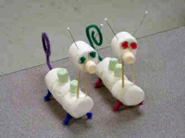 ![]() The CATS 9 class at Calhoun High is studying genetics and recently used their knowledge of heredity to build Reebops, mythical creatures known to have seven chromosomes, each holding one gene or trait. Students discovered that genetics controlled the number of antennae, color of nose, number of body segments, number of humps, number of eyes, color of legs, and whether the tail was straight or curly. After randomly choosing chromosomes, the students read and translated the genetic code for their Reebop baby. They built the child according to the genetic code. Students were surprised to find several genetic matches in the 31 children despite calculating that in an organism with seven traits there are 128 possible genetic combinations. When they considered that humans have 100,000 traits they realized why, despite the common saying, people don't really have a twin somewhere on earth.