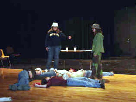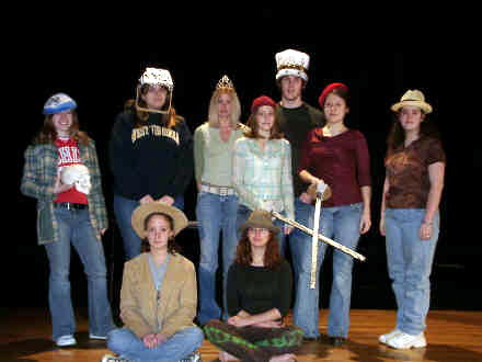 | Larry Harris' English 12 class wanted to act out part of Shakespeare's play "Hamlet," and they have busy doing just that. The students have been involved in the dual-credit program offered by Glenville State College. Harris said "I work with these students all year, and by the end of the second semester these kids will have earned two secondary credits in English and nine hours of college English." Harris said they are a very bright group of students who have done a lot of work this year. "We really recognize their talents," he concluded.