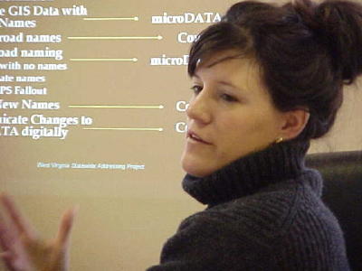 ![]() Cynthia Smell, addressing liaison, spoke to county officials about E-911 Calhoun's E-911 mapping and addressing is moving forward, according to the county's 911 director Joe Tanner. "The aerial photography and mapping should be completed by the end of June," he said. Cynthia Smell, representing the statewide Mapping and Addressing Board, told Tanner and members of the County Commission yesterday that 400,000 new E-911 addresses would be assigned to residences in the state. Smell said field collectors for E-911 addressing will be in the county sometime during the next year. Residents will receive information in the mail, requesting their assistance with the project. "Field Collectors will have name tags and ID cards and will be traveling in a clearly marked van," she said. The E-911 project will be completed in all 55 counties by 2007, but it is likely Calhoun's completion will be sooner since some of the work is already done. Tanner said at least one public meeting will be held prior to the addressing phase, "Just so people will know what is going on." Calhoun's E-911 system already has most of the electronics to make it operational. "The enhanced system allows dispatchers to quickly locate the caller. A map comes up on a screen pin-pointing their location along with the best routing to the area where there is a problem," Tanner said. The statewide mapping and addressing is dedicated to having a uniform system in the state. Attending yesterday's meeting, in addition to Tanner - Commissioners McCallister, Sampson and Weaver, County Clerk Richard Kirby, 911 supervisor Burl Postalwait, Assessor Jason Nettles, former 911 director Barry Pitts and Magistrate Rick Postalwait.