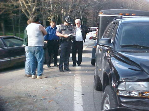 Rear window knocked out in Stevens vehicle At least two people were taken to Minnie Hamilton Health Care Center by Calhoun EMS for evaluation following a two vehicle collision on Phillip's Run yesterday evening at 5:45 p.m. A truck driven by Kenneth Chennoweth of Ohio collided with a vehicle driven by Eugene Stevens of Grantsville near the mouth of Riffle Run, three miles south of Grantsville. The truck was pulling an empty trailer. Deputy Sheriff Ron Bandy said the accident appeared to be Stevens fault, although his investigation was not complete. The Grantsville VFD responded to the accident.