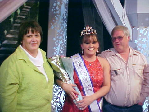 Whitney and proud parents Dave and Shari Johnson It was a night of pageants, with the big event being the crowning of Queen Flora XLII. The judges selected Whitney Johnson, daughter of Dave and Shari Johnson of Mt. Zion, to reign over this year's Wood Festival. The evening of pageants covered the Jr. Miss Teen Contest, Miss Teen Wood Festival (ages 13-14) and Miss Teen Wood Festival (ages 15-16). THE WINNERS Queen Flora XLII (42nd)