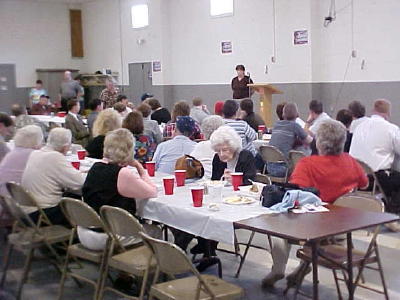 Besides campaign talks there was dinner Calhoun Democrats came out in full force yesterday to a Meet the Candidate Dinner at the Arnoldsburg community building. Most Democratic candidates for county offices attended the event, in addition to candidates for the Board of Education. Besides campaigning, the group enjoyed a covered dish dinner. Ken Heckler, candidate for Secretary of State, was in attendance, He said "I want you to remember when you go to the polls, I've been the only candidate who came to this county (more than once) seeking your support." The 89-year-old politician and author has previously served as Secretary of State. A representatives of Joe Manchin's candidacy for governor spoke to the group saying "Joe is a people's candidate, and is being supported by the working people of West Virginia." Delegate Bill Stemple ask the group for their support in his re-election bid, speaking about numerous projects with which he has assisted over the years. County Democrat chairperson Margie Evans introduced the candidates, who gave brief talks about their candidacy. Candidates attending were, Larry Robinson, Circuit Clerk; Shelia Garretson, Circuit Clerk; Jason Nettles, Assessor; Matt Minney, Prosecuting Attorney; Ivan Holbert, Sheriff; Carl Ballengee Sheriff; Charles McCroskey, Sheriff; Billy Mullins, Magistrate; Rick Postalwait, Magistrate; Teresa Robinson, Magistrate; Perry Jenkins, Magistrate; Joy Starcher, Board of Education; Sandra McCumbers, Board of Education Ralph Cunningham, Board of Education; Larry Baker, Board of Education; Bob Weaver, County Commission; Bill Jarvis, County Commission