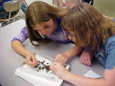 Students are sorting undigested bones from owl "barf"