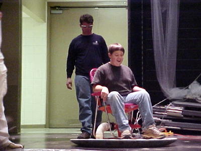Volunteers had a chance to "ride on air" Calhoun Middle School (grades 5-8) students experienced an exciting day at HSTA's 3rd Annual Science Day Friday, everything from bugs, germs, and owl pellets to "barf" bags, bones and a planetarium. The roving health, science and technology exposition took students from one end of the school to the other to observe, experience and participate in the science projects. "The kids really got into it," said sponsor Tammy Yoak. "It has been an exciting day." Likely the most enthusiasm was generated in an afternoon chemistry demonstration where HSTA members and Glenville College students "blew up" a few things in the school's auditorium.