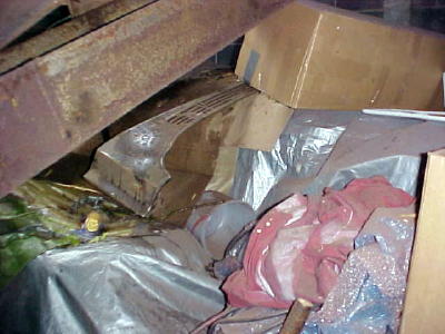 1956 antique Chevy is underneath debris
