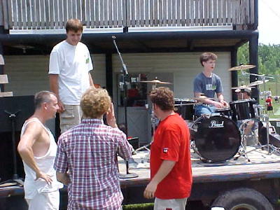 ![]() One of several bands get ready yesterday afternoon