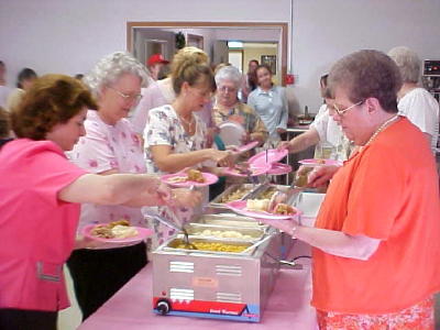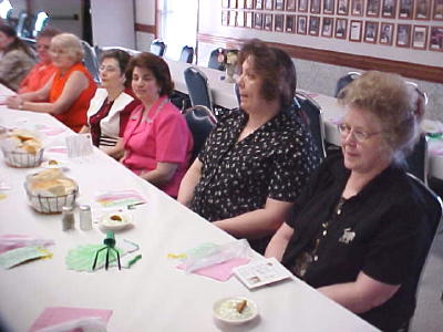 ![]() Sue Jones (left) was key speaker for event Winning the look-a-like contest was Clarice Whytsell and her daughter Jan Poling of Grantsville. Jamie Kennedy sung "A Handful of Weeds." The group enjoyed a buffet dinner.