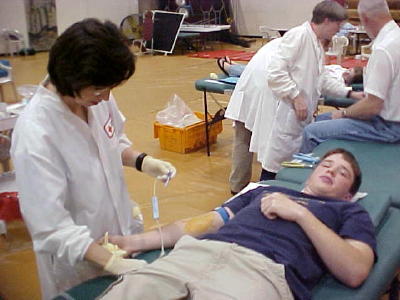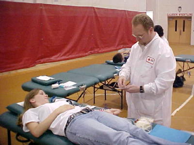 "This is my very first time" The Calhoun High School Student Council sponsored the Red Cross Bloodmobile yesterday at the school. Students not only helped with the bloodmobile, but several of them donated blood. The next blood drive is scheduled for the Victory Baptist Church on May 20th from noon until 6 p.m.