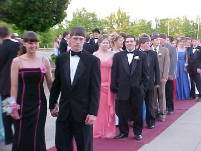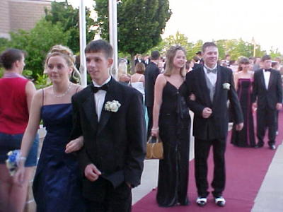 | "Memories are priceless," said a parent, watching the young men and women of Calhoun High School walk down the red carpet to the annual prom. Calhoun kids were all dressed up with a swell place to go, the school's biggest social event of the year. The school's prom committee worked into the night Friday decorating the commons area for the big event. Their attention to the event paid off. The hall looked wonderful, stars, lights and candles, not to forget the music. Dozens of parents lined up in front of the school with their cameras to catch the arrival of their kids as they walked down the red carpet. Noticeable were the old cars, shined and polished, driven by the young gentlemen to the front of the school to escort their girlfriends to the carpet. Gratitude was expressed last night for the warm spring night, remembering last years downpour which resulted in flooding and with the night being cut short. But it is the memories of youthful days that count, mostly for Seniors, whose graduation is just around the corner. The Herald presents this picture scrapbook of PROM 2004 for all our readers here and around America, even those who check in daily in Iraq. Enjoy your visit with our great Calhoun kids.