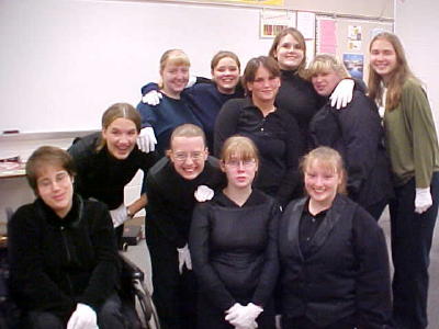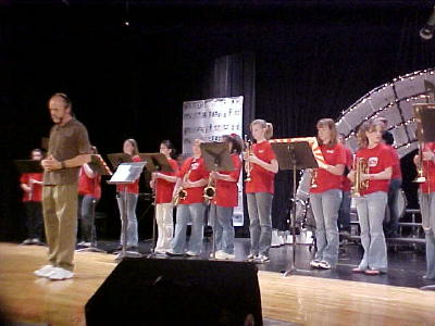 Susan Sullivan's rendition of "I Think We're Alone Now" The 2004 Calhoun High Follies kicked off last night with the first of three performances, another is scheduled tonight at 7 p.m. and another Sunday afternoon at 2 p.m. "Music in Time" features Calhoun Middle-High School students and local talent, a two-hour program of tunes and dancing, everything from choral groups to the high school band. Masters of Ceremonies Derek Roberts and Tyson Price introduced nearly twenty performances, including the community singers known as Calhoun Choral Reflections. The CHS Choir gave performances including a song and dance number called "Dance with Your Hands," which featured illuminated hands "dancing" in the darkened auditorium. The entire cast performed, "Oye La Musica" - "Ease On Down the Road" - "I Got the Music in Me" and "Tusk." "60's Party Line" was performed by the High School Choir and Choral Reflections. Tiffany Swisher sang "One Way Ticket," Whitney Johnson sang "When I Think About Angels," and Susan Sullivan performed "I Think We're Alone Now." The Calhoun Middle-High School Band did a jumpin' rendition of "Shakin' at the High School Hop" and "Fantasy on an Irish Clogging Tune, Calhoun Choral Reflections performed "Turn, Turn, Turn" and Bohemian Rhapsody. There was the rock and roll sounds of Uppahollr and Stoker. Brianna Blankenship sang "Awesome God/Shout to the Lord," and Vicky Lamont performed "There You'll Be." The stage was filled with fine entertainment. Follies Director Harry Bealle, Choir Director Faye Chambers and Dance Coordinator Casey Harris are extending a special invitation to the community to come and enjoy the entertainment. Follies 2004-"Music In Time" Director-Harry Beall, Choir Director-Faye Chambers, Dance Coordinator-Casey Harris, Administrative Assistant-Jenna Jett, Art Director- Jo Moellendick, Sound-Ryan Bremar, Lighting-William Weaver, Masters of Ceremony-Derek Roberts and Tyson Price, Crew-David Dodd, David Eagle, Alica Mae, Amanda Mae, Walter Mace, John Dodd, Jacob Dodd