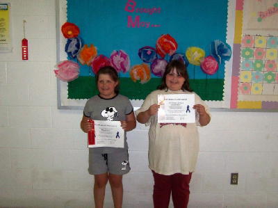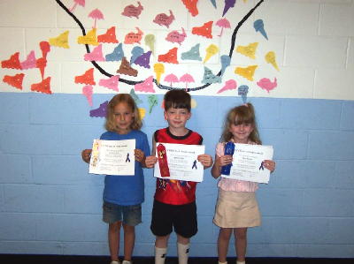 ![]() Kindergarten: 1st place-Ashley Richards, 2nd place-Austin Gribble, 3rd place-Samantha Jones