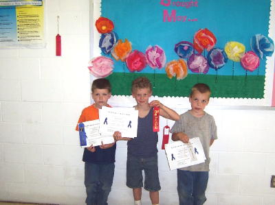 Kindergarten: 1st place-Kurtis Neely, 2nd place-Boston Evans, 3rd place Matthew McCumbers