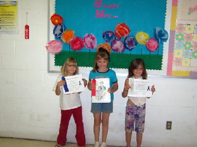 Third Grade: 1st place-Hillary Lane (not pictured) 2nd place-Makayla Johnson, 3rd place-Carol McCumbers
