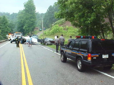 SAME SPOT, DIFFERENT DAY AUTO ACCIDENT - Rain And Asphalt Slick Hog Knob Hill |
