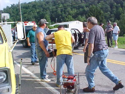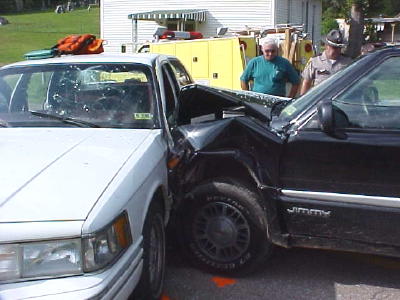 Grantsville VFD used Jaws of Life Two vehicles collided at Cabot Station yesterday evening shortly after 5 p.m., sending at least one person to Minnie Hamilton Health Care Center. Sheriff Allen Parsons said a Lincoln Town Car driven by Inez Shuman of Grantsville was pulling onto Rt. 5 from a driveway when her vehicle was struck by a GMC Jimmy driven by Rebecca Keener. Shuman and a passenger were extracted from the vehicle by the Grantsville Volunteer Fire Department using the Jaws of Life. Keener, who had three-year-old strapped in the back seat, was traveling west on Route 5. Neither she nor the child received serious injuries. Shuman was taken to Minnie Hamilton Health Care Center by Calhoun EMS, where she was treated and released. The passenger was reportedly not injured. Chief Deputy Carl Ballengee and Deputy Ron Bandy were also at the scene.