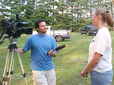 ![]() Bonnie Bever talks about the life and times of the Mt. Zion Drive-in Theater yesterday evening to a WCHS-TV reporter for a weekly TV spot called "Travel West Virginia." The drive-in is now a Calhoun landmark with patrons from several generations. |