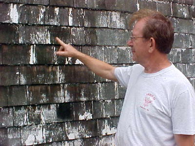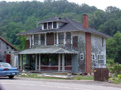 Knott's says he will remove paint from cedar shake shingles By Bob Weaver (2004) Peregrine Hays and his wife Louisa Sexton Hays arrived in Arnoldsburg in 1840, over 160 years ago. Today the mark of the Hays family can be found up and down the West Fork, in addition to being one of the significant historical personages prior to and following the founding of Calhoun County. This past week, a "modern" house built by Peregrine's grandson George W. Hays, Jr. received special attention with the rising of the structure out of the flood plain. The house has been owned by Clyde and Judy Knotts since 1993. A house moving company from Logan County is doing the job, lifting the house 32 inches, more than adequately placing the house above flooding West Fork waters. Workers had already inserted large steal beams under the structure, yesterday, using lots of wooden ties and jacks. The house was carefully being raised, including a brick chimney. "We've been working on restoring it since we bought it," said Knotts, who with his wife have done extensive renovation to the four-bedroom dwelling. "Our next step is to restore the cedar shakes, which were unfortunately painted a number of years ago," he said. Hays ordered the Sears and Roebuck house in 1919 after his house burned to the ground. His original home, likely a log cabin owned by his father G. Warren Hays, was located in a bottom below Arnoldsburg on the original Peregrine Hays estate.