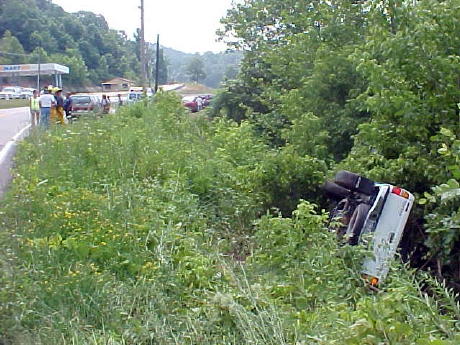 AUTO CRASHES OVER EMBANKMENT AT ARNOLDSBURG |
