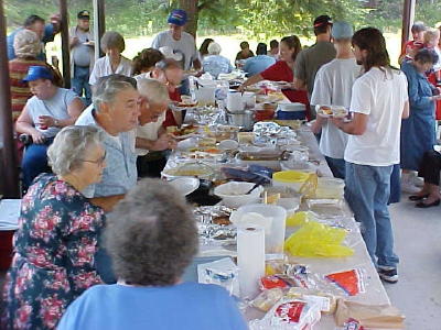 ![]() The long table holds tasty country food