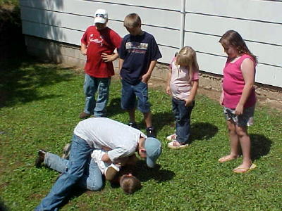 ![]() A little rasslin' behind the church