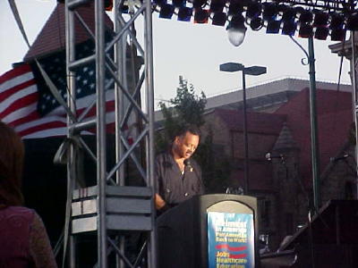 Jackson said America's middle class workers are America's newest minority group. Jackson and other speakers denounced Republican California Gov. Arnold Schwarzenegger's comment from last week's Republican National Convention: "To those critics who are so pessimistic about our economy, I say, Don't be an economic girlie-men!" Schwarzenegger's comment was an insult to hundreds of thousands of workers whose jobs were eliminated or shipped overseas, Jackson said. "Thirty-four steel mills have closed. Are those workers girlie-men?" Jackson asked.P> Asked what type of concert Republicans would put together, singer Willie Nelson laughed and said he'd rather not answer. Jackson replied "Schwarzenegger and the Hummers" or the "Girlie-Man Band." Jackson said it was easy for Schwarzenegger to make such comments, indicating he did not have to toil in coal mines or on an assembly line to make a living as many other immigrants have done.