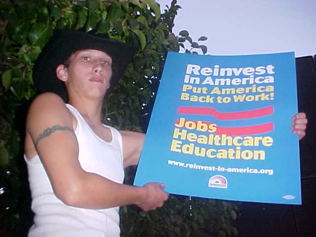 Protesters against the war stood motionless with When Leo Gerard, president of United Steelworkers of America, asked if there was anyone better off today than they were four years ago, the crowd of thousands fell silent. "How the hell can this guy ask to be re-elected?" he asked. Gerard also said that at least 50 million Americans have no health care and three million more people are in poverty under the Bush administration. He said the American worker's lot in life is sinking and has been sacrificed to multi-national corporations. "When he said we've turned the corner â we were mugged by Bush and Cheney," he said. Jackson said American workers have to compete on an uneven playing field against countries that rely on slave and child labor. Americans need better access to fair wages and the right to organize, he said. "Most poor people in America are not on welfare," they are trying hard to make it, many holding two jobs, said Jackson. "They work every day." Jackson said voters need to "follow the money," citing the cost of the Iraq war and the number of manufacturing jobs lost around the country and especially in West Virginia. Jackson's plea was echoed by actor Danny Glover, labor representatives and performers including country music legend Willie Nelson, Judy Collins and the musical duo Indigo Girls.