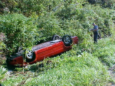 AUTO LANDS IN CREEK NEAR ARNOLDSBURG - Driver Abd Passenger Escape Injury |