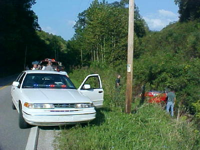 ![]() Deputy Bandy examines wrecked vehicle