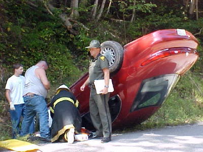 A Mt. Zion man was slightly injured when his car crashed into the hillside along Route 7, Russett Road about 1 p.m. today. Charles Boggs and a boy were taken to Minnie Hamilton Health Care Center for evaluation by Calhoun EMS. The Boggs vehicle reportedly met an oncoming vehicle in a one-way section of the highway. The Grantsville VFD responded to the scene. Sgt. Darrin Campbell investigated the accident.