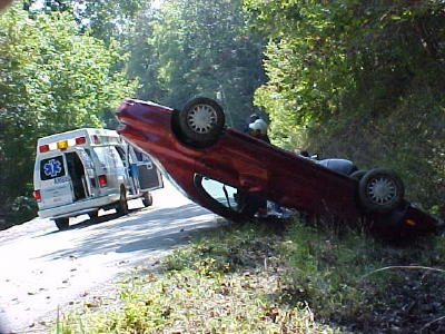 CAR CRASHES ON ONE-WAY SECTION OF RUSSETT ROAD - Driver And Passenger Taken To MHHCC |