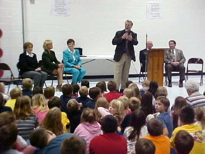 Dr. David Stewart, State Superintendent of Schools (pictured left) came to the school to present the award to Principal Stinn. Stinn said "Most importantly the recognition goes to the students and our teachers" Dr. Stewart praised the school and its students, saying "We want children to achieve and reach their greatest potential. The statewide recognition tour is our way of celebrating school success." "However, schools that have shown improvement or who have reached other notable standards should get the same pat on the back." Students recited the Pleasant Hill Pledge, which is dedicated to accomplishing goals.