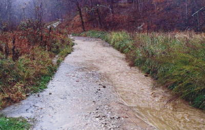 ![]() At least three Back Fork families are cut-off when it rains, their access road flooding, according to property holder Bob Beall. A creek runs across the rock-base road, flooding the roadway up and down the hollow. The section is about two and one-half miles off State Route 16 at Big Springs. Beall said he has offered to purchase a drain pipe if the Department of Highways will do the project. He has been trying to get the job done for a couple of years, he said. He said officials have said permits must be obtained from EPA and the Corps of Engineers. "I have gone through all the channels I know about," said Beall, but so far we still have a problem. He expressed concern for individuals who have health problems who need to get out, but "Down this road is the only way out."