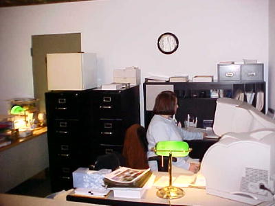 Bonnie Bird says new quarters are very comfortable Grantsville's town office has moved into the old jail building, an annex to the Calhoun County Courthouse. Town employees and volunteers helped with the move this past weekend, following an application of new carpet and painting the office. Cleston Nichols made a new counter and town council member JoAnn Stevens made drapes. Longtime town employee Bonnie Bird, said the new office is very comfortable. Employee Pam Davis said the town is working toward providing easier access to the building for citizens. The building also houses the office of Chief of Police Ron Gordon. |