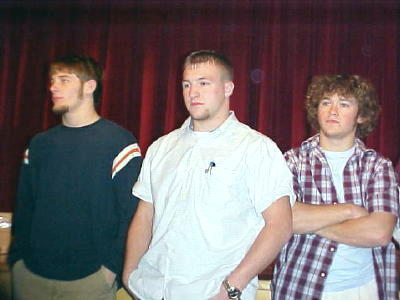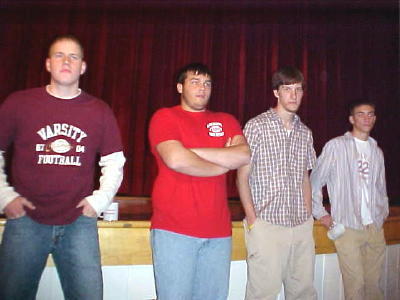 ![]() The "retiring" football seniors of 2004 were recognized by the coaching staff, including (L-R) Justin Price, Dustin Carpenter, Dustyn Nichols ...
